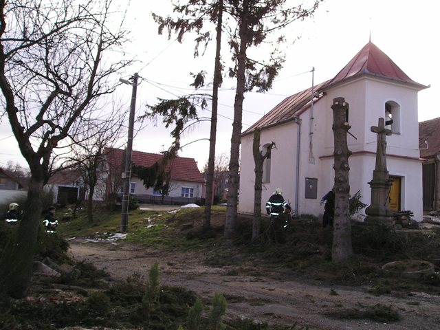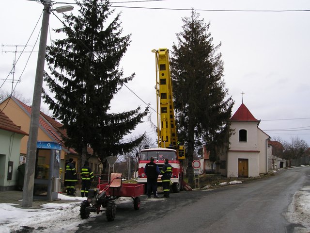 Kácení stromů u kaple